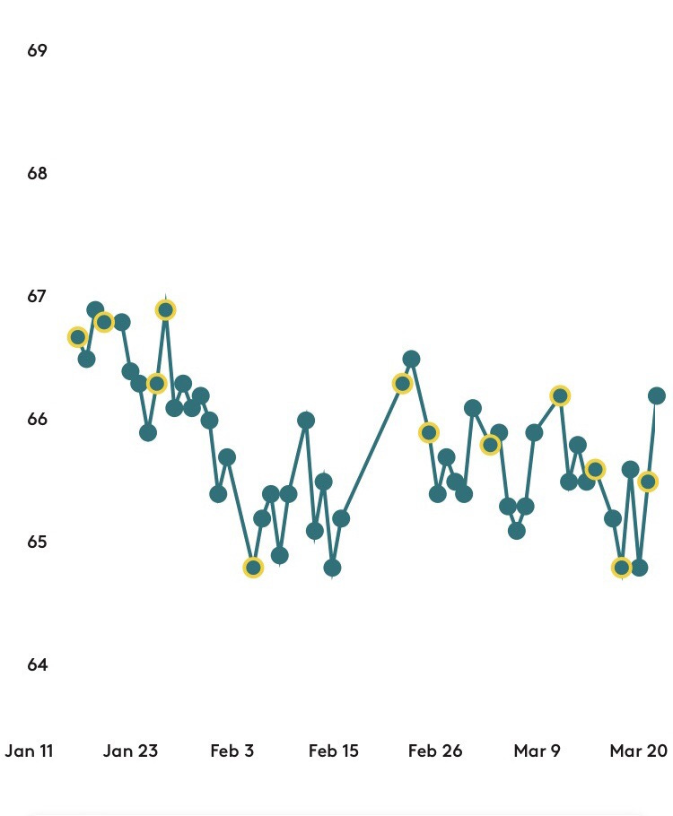 There are normal fluctuations, but the graph of this line is flat.