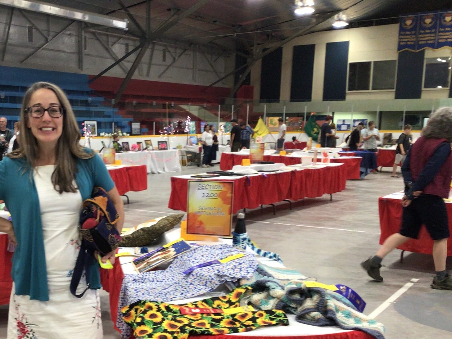This photo is me on the day I won FIRST PRIZE at the craft fair for the sunflower shirt I sewed! (See Footnote 11 for why I subtly placed that fact here). Oh! And I HAPPEN to be wearing that EXACT shirt today!